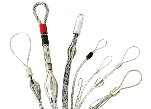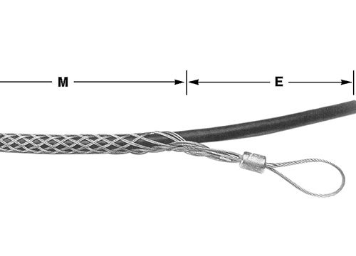 Pulling Grips offer excellent means of pulling electrical cable, bare conductors, copper telephone cable or rope through conduit. Grips are made of high-quality galvanized steel strand to assure long life. Under normal conditions, the grips should be used with a safety factor of five, but this will vary depending on the situation. The tension, diameter, movement, number of objects gripped, gripping surface and the attachments used are some of the variables affecting the safety factor. In addition, the effects of abrasion, corrosion, prior use or misuse must be considered and the grip replaced when necessary. The safety factor is ultimately determined by the user.