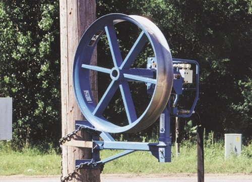 When overhead fiber optic cable installation applications require the smooth hydraulic power and accurate tension measuring system of the Condux Fiber Optic Cable Puller, the Pole Mounting Frame is available. Install the cable puller on the frame with no modifications necessary to the puller. By design, the Pole Mounting Frame offers a secure hold on the cable puller both vertically and horizontally for a worry-free pull. A special plug drives into wood poles for added stability. Includes all mounting hardware.