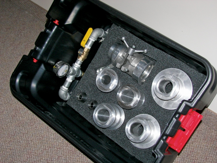 Is a method of installing winch line in Conduit. It turns the job of pulling winch line into one easy step. Eliminating the need to blow a string and pull back a rope. Using compressed air, 90 psi and 100 cfm, the winch line blower can propel steel winch line, rope or tape in conduit from 1" to 6" in diameter. Installation is easy. No special tools are required. Follow the steps called out on page 39.